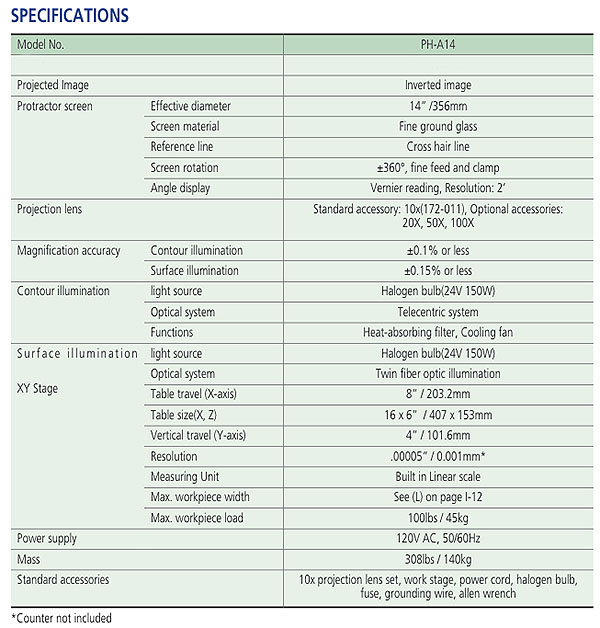 For Mitutoyo 14" Optical Comparator, Profile Projector & Accessories Click Here