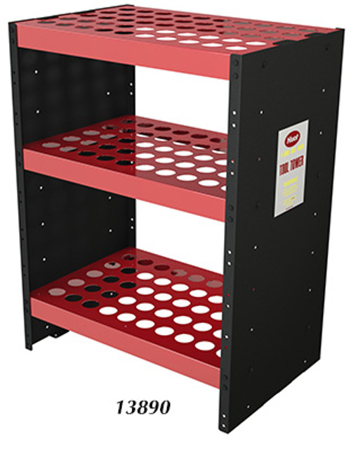 The Huot NC ToolTower provides an economical free standing storage unit for toolholders. It comes with 3 shelves and can be stacked to form a 5 or 6 shelf tower, providing a cost effective way to store and protect many NC Toolholders in a compact space.
