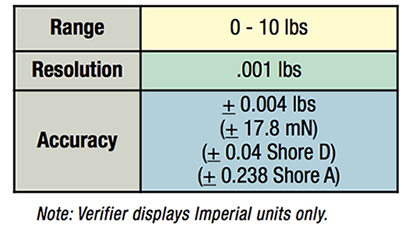- High precision load cell and handheld smart sensor indicator verifies PosiTector SHD Shore A and Shore D durometers